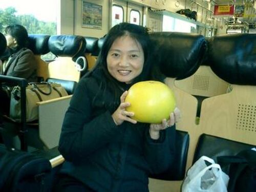 出水のツルに感動したといったら、同行者はツルより食い気とばかりに本人の頭と同じくらいもある巨大なボンタンをたった200円で買ってご満悦でした。写真は、川内(せんだい)で肥薩おれんじ鉄道から乗り換えたJR鹿児島線の車内で撮ったものです。帰宅…