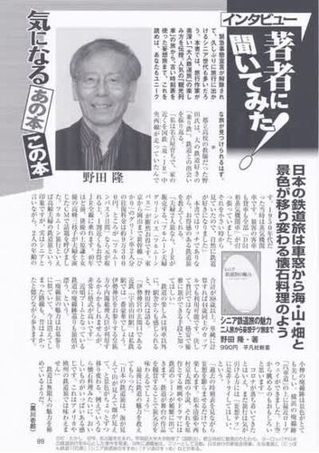 10月に刊行された『シニア鉄道旅の魅力』(平凡社新書)の紹介記事が続々と出ています。 最初は、11月16日に発売された週刊誌「アサヒ芸能」11.25特大号。 そのp89「気になるあの本この本~インタビュー著者に聞いてみた」 インタビューはリアルではなくZOOM…