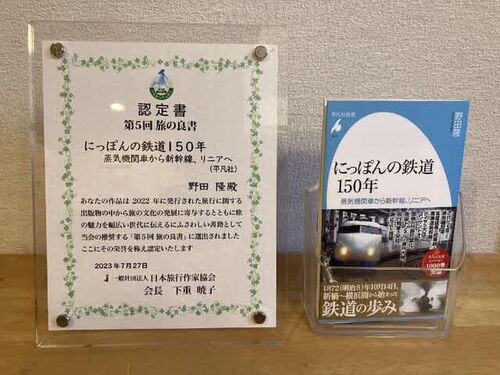 2022年9月に刊行された拙著『にっぽんの鉄道150年』(平凡社新書)が、このたび「旅の良書」に選出され、認定書が授与されました。 「旅の良書」というのは、紀行文、エッセイ、ノンフィクションのジャンルから旅にかかわる優れた著作を表彰する「斎藤茂太賞…