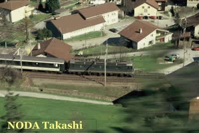 スイスの国境の駅バーゼルで小休止。DB(ドイツ鉄道)の103形電気機関車(写真はないです)からスイスの電気機関車に交代です。
