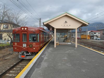再び電車に乗るためにホームへ。時間がたっぷりあると思っていたのですが、警笛が聞こえ、発車時間よりもかなり早くお目当ての「富士登山電車」が入ってきました。