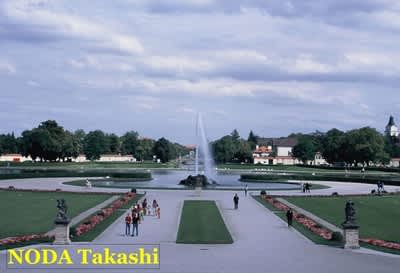 15分ほどで、Schloss Nymphenburg (ニンフェンブルク城)という電停に着きます。小さな川というかお濠に沿って歩くと、前方にお城が見えてきました。ニンフェンブルクは訳すと「妖精の城」。その名のようにメルヘン的な雰囲気でした。